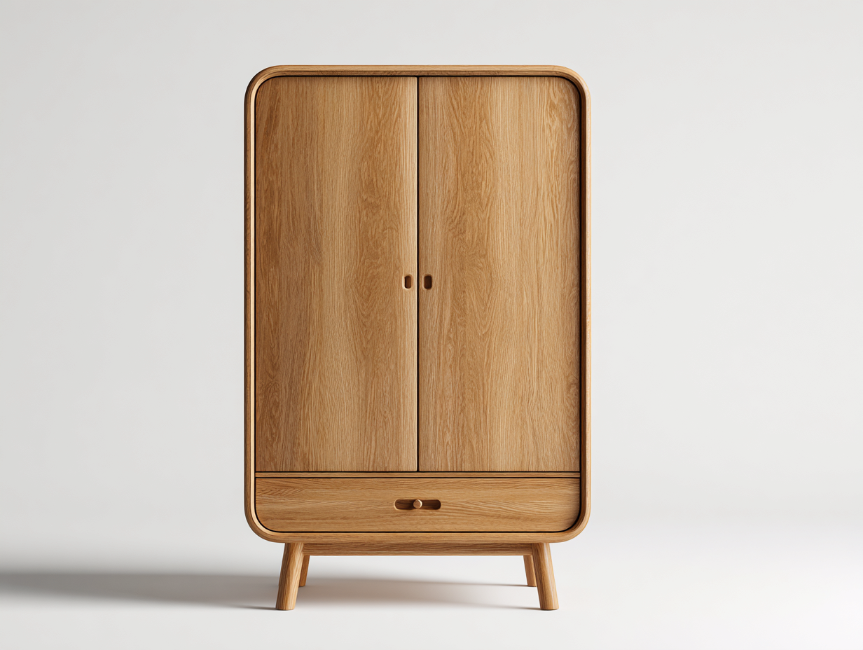 Armadio a 2 ante dal design moderno, ideale per organizzare lo spazio nella zona notte o in ambienti domestici multifunzionali. La struttura compatta e le linee arrotondate contribuiscono a creare un ambiente ordinato e visivamente armonioso.