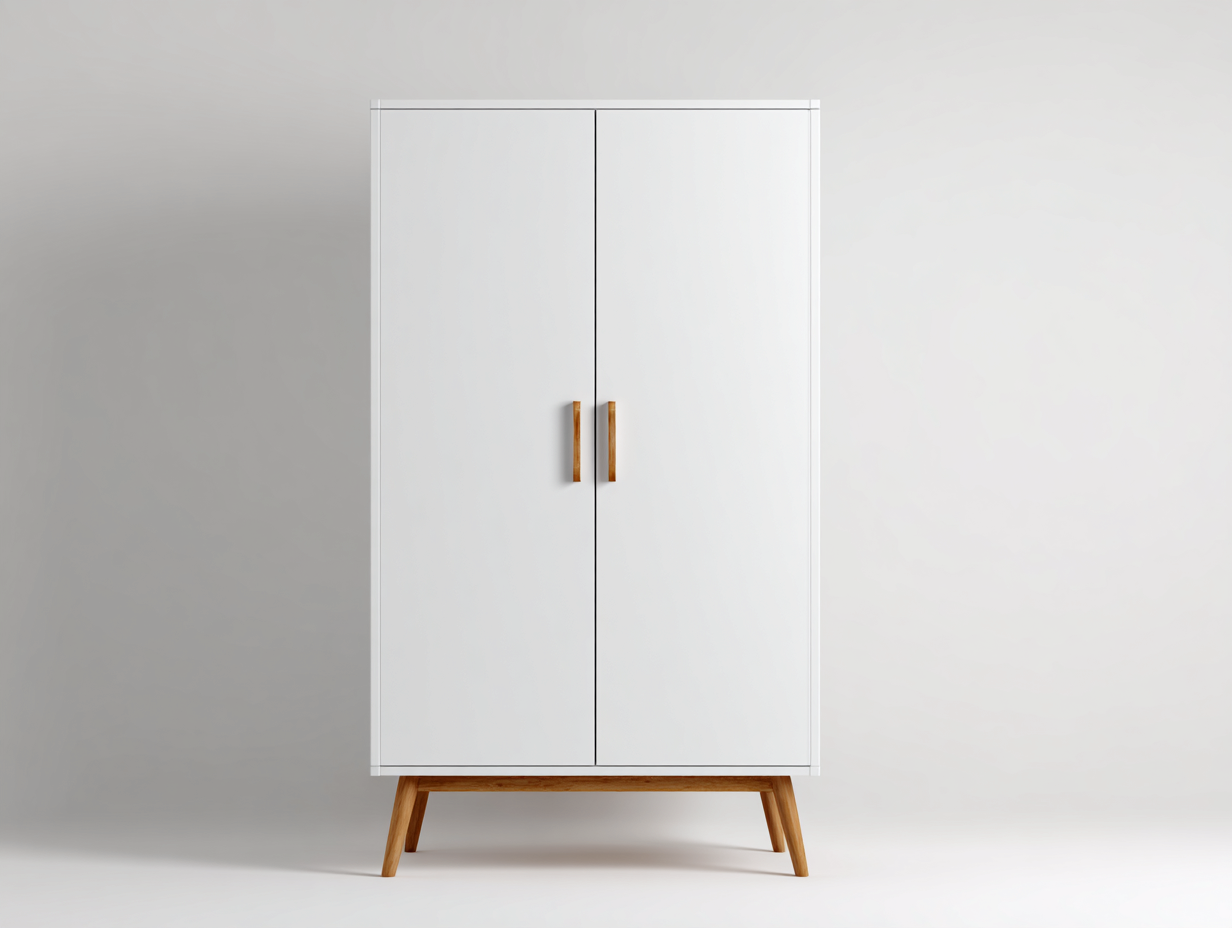 Armadio a 2 ante dallo stile moderno essenziale, progettato per ambienti domestici contemporanei. La combinazione di superfici bianche e dettagli in tonalità naturale crea un equilibrio visivo pulito, ideale per mantenere ordine e armonia nella zona notte.