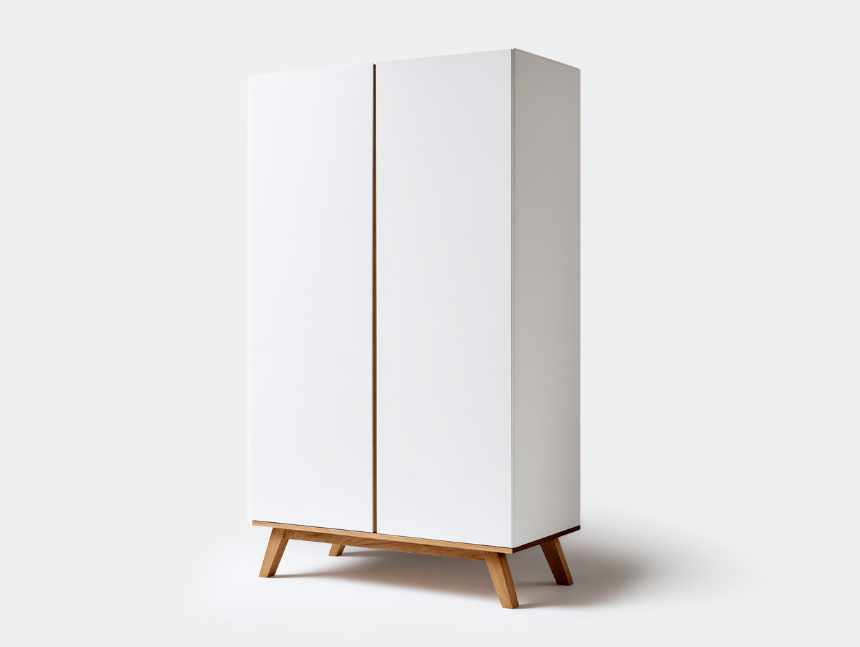 Armadio a 2 ante dallo stile nordico minimalista, progettato per adattarsi a spazi abitativi moderni. La combinazione di superfici chiare e dettagli in tonalità naturale crea un equilibrio visivo sobrio e funzionale, ideale per la zona notte.